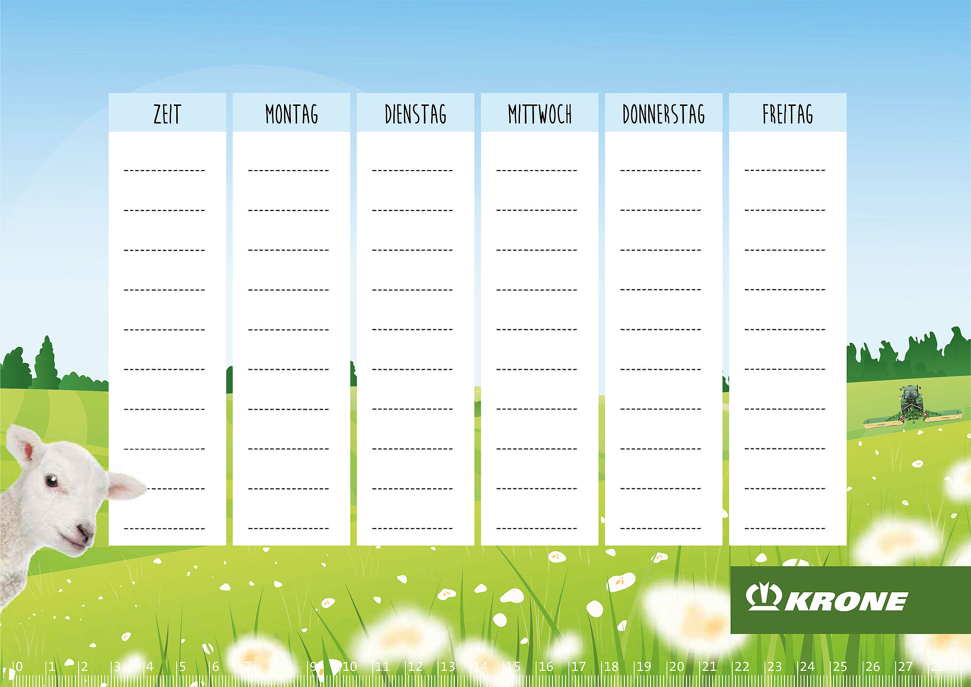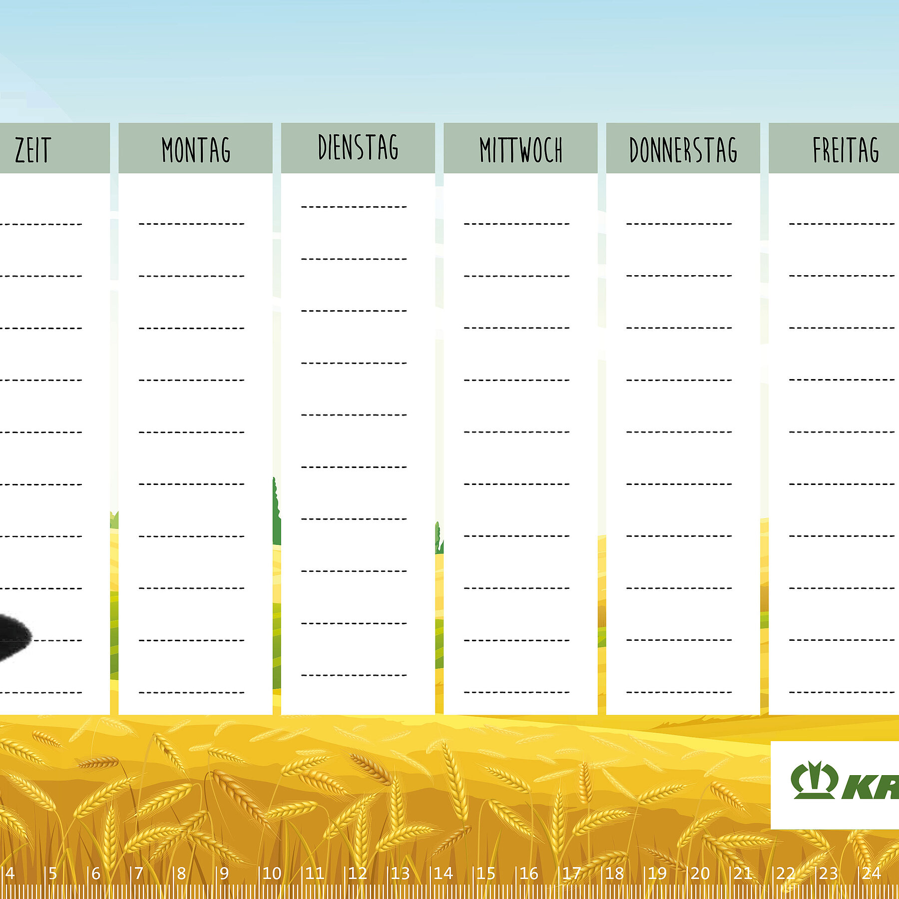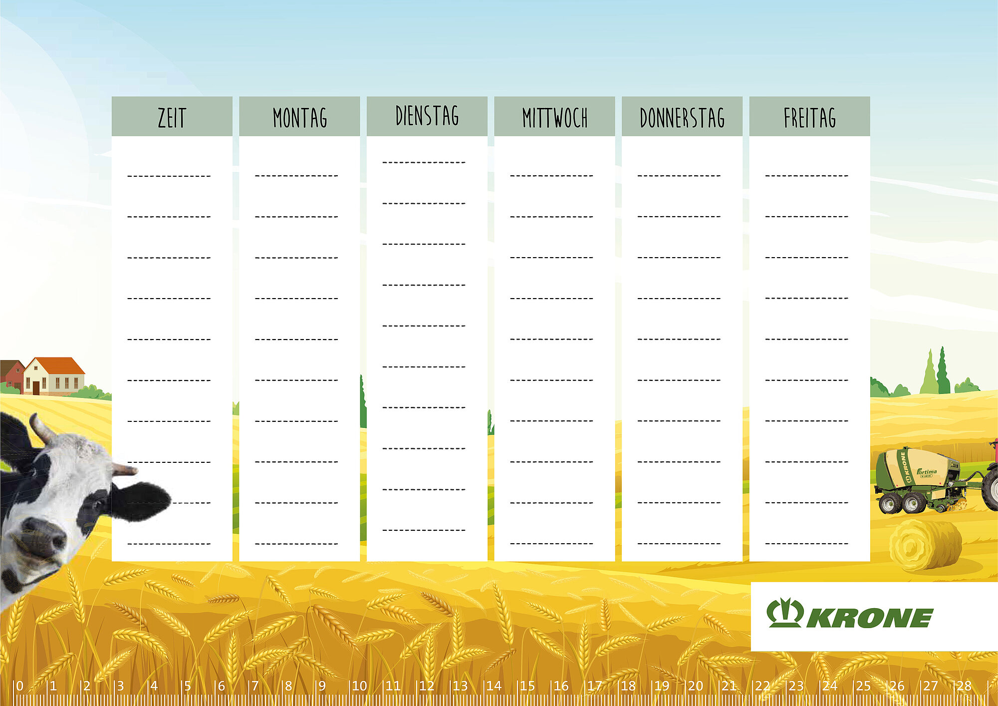 Starte mit KRONE in das neue Schuljahr und behalte immer den Überblick mit den neuen KRONE Stundenplänen. Was magst Du lieber? Die Gras- oder die Strohernte? Das Mähwerk oder die Rundballenpresse?