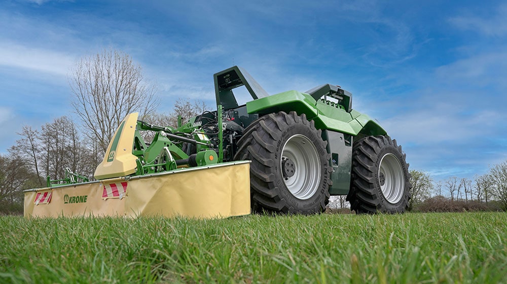 Both prototypes impressed by an excellent quality of work, high work rates and traction as well as plenty of lugging power and of course superb soil protection. Depending on the specific application and machine attached, the weight of the 2.70m wide and 2.60m high unit is between 7.5t and 8t. Fitted with 23inch wheels all-round, the process unit is powered by a fuel-electric drive and delivers 170kW (230hp) – enough to take on any of the tasks it is designed to carry out: ploughing, cultivating, seeding, mowing, tedding and raking. This level of versatility guarantees an excellent year-round utilisation.