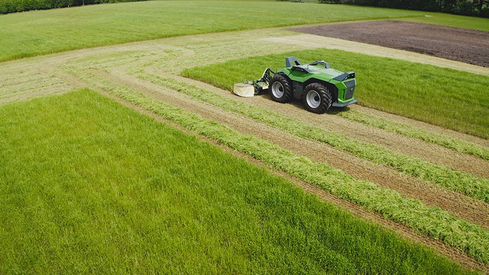 The unit was designed with the input requirements of the mentioned processes in mind. Its diesel engine develops a maximum power of 170kW (230hp) which is transferred electrically to the wheels and pto. The attachments are coupled to a three-point linkage. The base machine boasts multiple and extensive sensor systems which monitor the immediate surroundings and the attachments. The focus is on safe operation and optimum results. Operators control and monitor the combination from a mobile device, sending jobs and job reports through a communication module and via the established agrirouter data exchange hub.