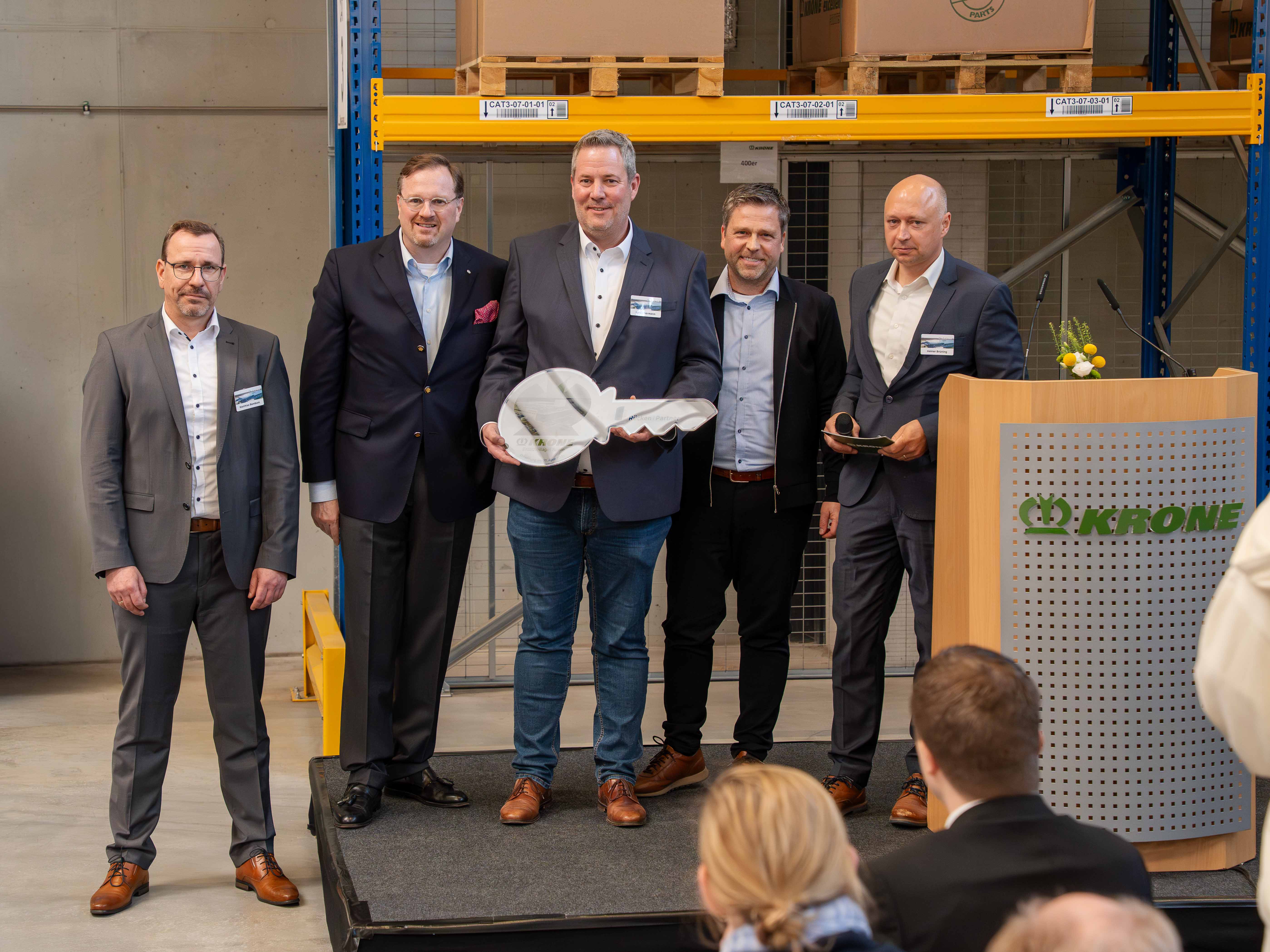 Spelle, 2 April 2025: Krone opened a new warehouse in Spelle yesterday based on the Efficiency Transport (ET) warehouse strategy. Logistics and supply chain management are closely interlinked to make the entire flow of materials and information as efficient as possible. With KRONE Parts, Maschinenfabrik Bernard Krone GmbH & Co. KG is setting new European standards, shaping their processes highly efficiently and implementing a visionary and ecologically exemplary logistics concept.