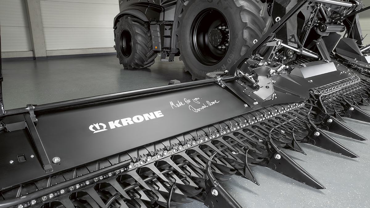 As a special highlight at the trade fair, KRONE will be presenting the world's first 16-row XCollect header (12 m working width) on the BiG X 1180 – an exclusive special model in matt black paintwork with the striking lettering "Born to perform".