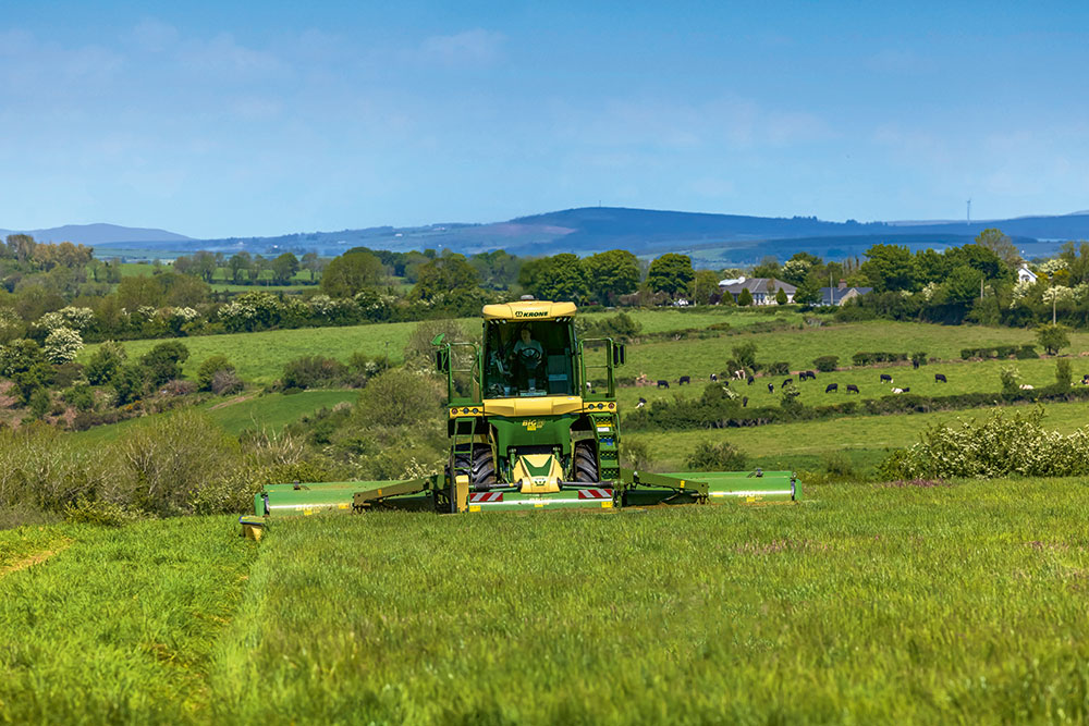 Spelle, April 2022 - KRONE introduces a new feature on the BiG M self-propelled high-performance mower conditioner and its front mower. The side-shifting mechanism on the front mower which is now available as an auto feature that adjusts the side-shift relative to the current slope gradient. The benefit of this is no striping in sloping fields and curved lines.
