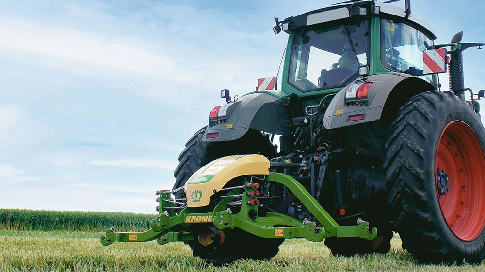 Running in 3m and 6m patterns, the EasyCut TC Connect allows farmers to cut at widths of more than 12m and up to 13.08m. EasyCut TC Connect can couple various machines without affecting their functionality. Australian and American farmers, for example, often operate the front-mounted EasyCut F 400 CV Fold together with two EasyCut TC 400 rear mowers, producing three identical and voluminous swaths for uniform wilting of the entire crop stand.