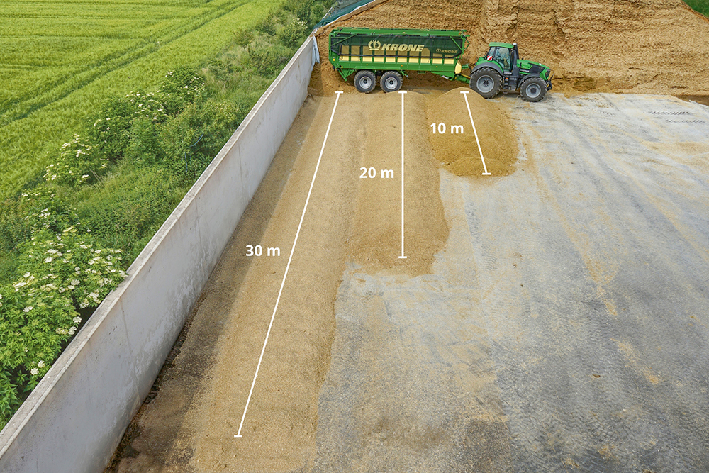 ExactUnload also helps minimise operator fatigue in the heat of harvest, enabling operators to concentrate on steering the combination on the clamp and monitoring the machine functions. ExactUnload is also a great help when setting up a silage clamp or unloading the material in the field. The uniform unloading rate ensures the material is distributed in a unform mat for optimal compacting afterwards.