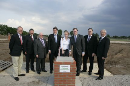 Immediately after the official inauguration of the logistics centre, McAllister had another duty to perform, one that he described as giving him “great personal satisfaction”: Together with Bernard Krone, he laid the foundation stone for a new training facility, situated just 200 metres from the main Krone logistics centre. Drive&Train is due to be completed by early 2013 and will host all future training courses at Krone. Every year, thousands of dealers from more than 40 export markets attend intensive courses extending over several days, learning how to operate the latest Krone products. The total investment in Drive&Train will amount to approximately €3 million.