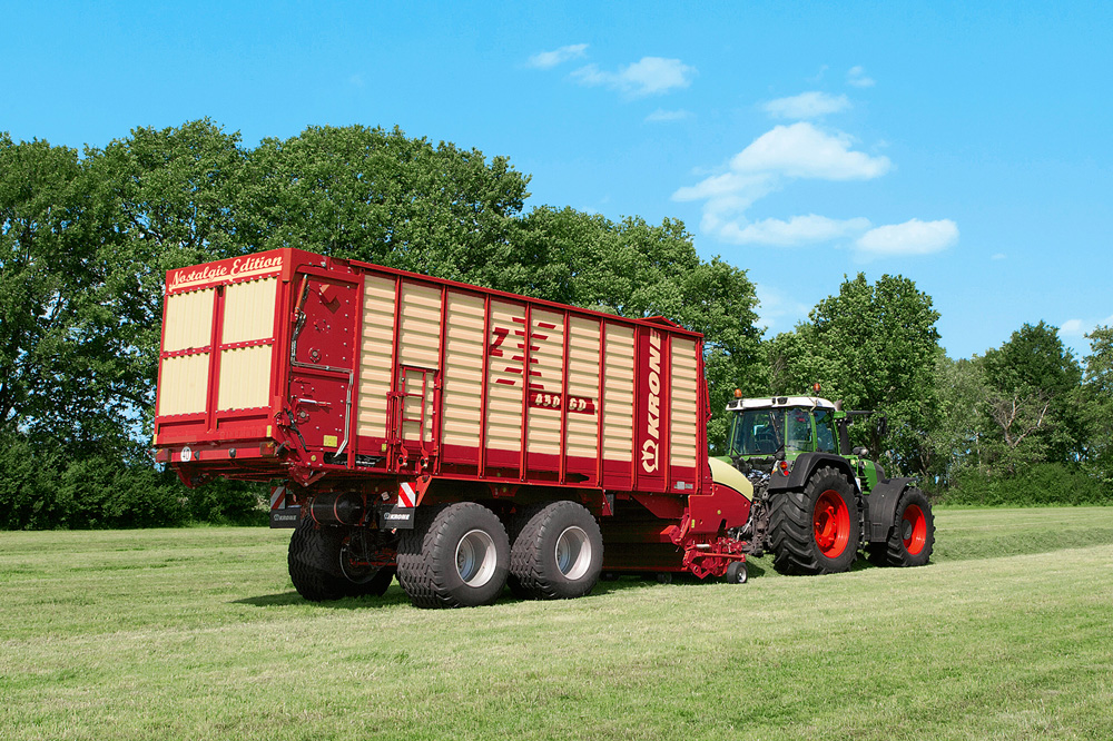 Spelle, April 2015: For this year’s Agritechnica in November, KRONE’s marketing experts came up with a special idea. For the first time after 20 years, KRONE will launch a strictly limited edition of the KRONE forage wagon ZX 450 GD. This edition is called “Nostalgic Edition” and will be characterized by the exact colors which represented KRONE during the eighties and nineties – namely clear beige and bright red. This campaign is aimed at all customers who keep tradition and nostalgia in mind and who would like to have and present a highly individual forage wagon. The technology of this limited edition is absolutely not nostalgic, but contains all features that constitute the normal product series of ZX-forage wagons. Everybody interested in this limited “Nostalgic Edition” should reserve it as early as possible. Our KRONE representatives are glad to answer inquiries and give further assistance.
