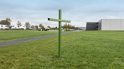 Spelle, 16. Oktober 2019 – Ein rund 2 m großes grünes Stahlkreuz hat Krone heute auf einer Fläche zwischen dem Krone Trainingszentrum und dem LVD…