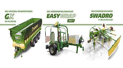 Spelle, im September 2021 – Zur neuen Saison ergänzt KRONE sein Schwader-Programm um drei neue Einkreiselschwader namens Swadro S 380, Swadro S 420…