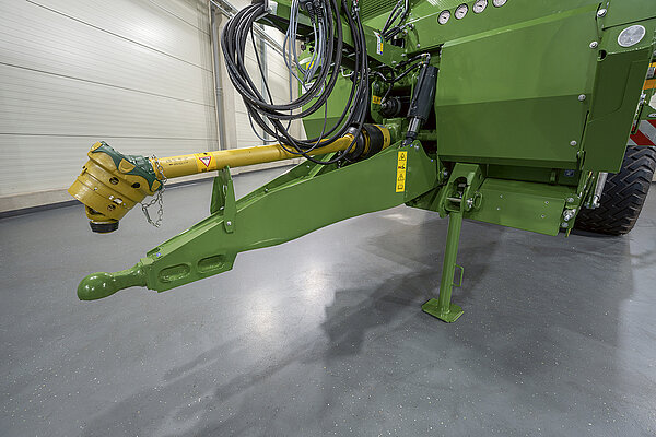 - Hydraulic articulated drawbar: Front end lowered toward the tractor to open fields