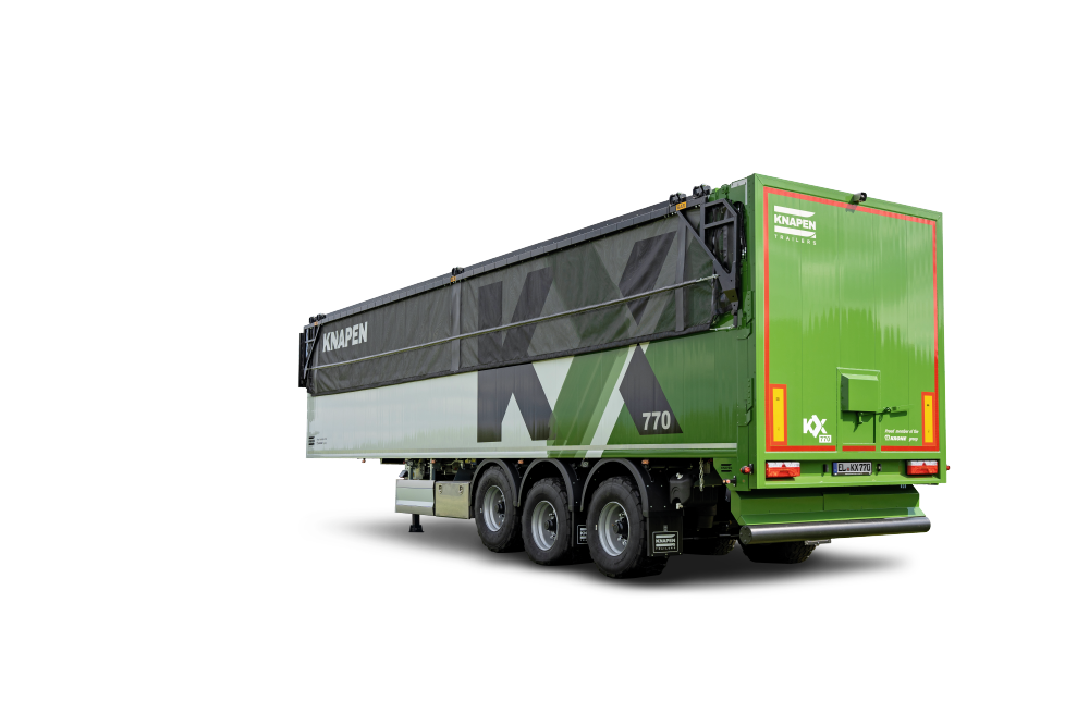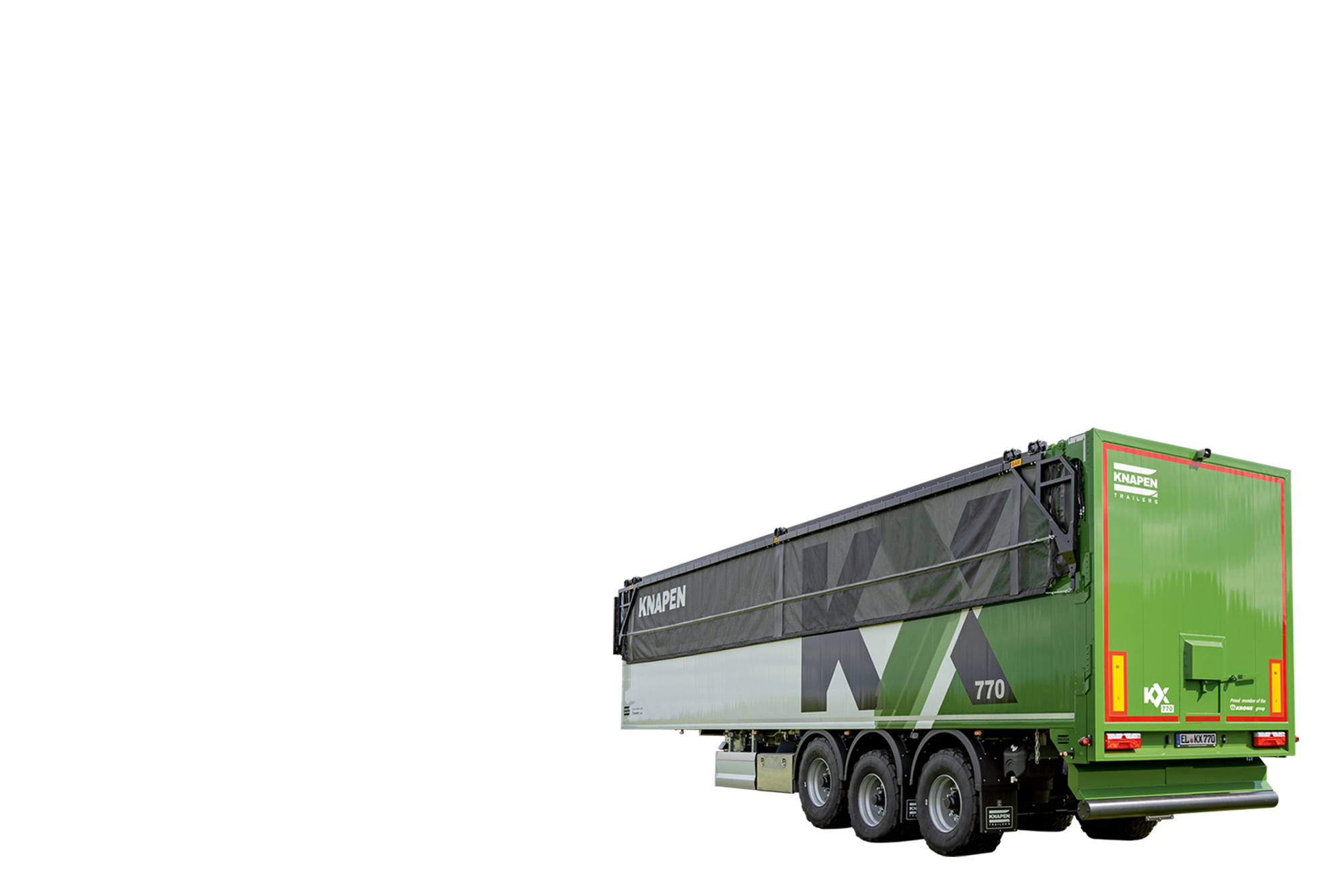 The Dutch company KNAPEN specialises in moving floor trailers and offers the KX series in cooperation with KRONE. This series comprises two moving floor trailers which have been specially designed for the agricultural sector. With load volumes of 65 mΒ³ or 77 mΒ³, they are the ideal companions for long transport distances. The Power Speed floor enables a fast unloading duration, thereby ensuring outstanding efficiency and power.