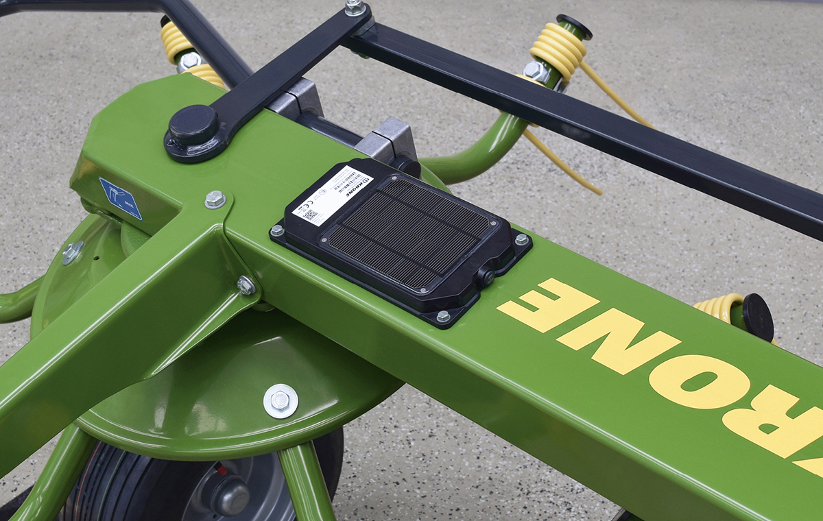 The KRONE SmartConnect Solar telemetry unit is completely autonomous thanks to the solar panel and rechargeable battery. This means that the box can be used flexibly on all machines, regardless of the manufacturer. The following data is sent by the SmartConnect Solar in real time: the position, the speed, active and inactive operating hours, the distance travelled, the working and transport position, the number of loads or the worked area and the charge status of the rechargeable battery. The machine data is recorded in real time and automatically transmitted to KRONE Smart Telematics or the agrirouter.