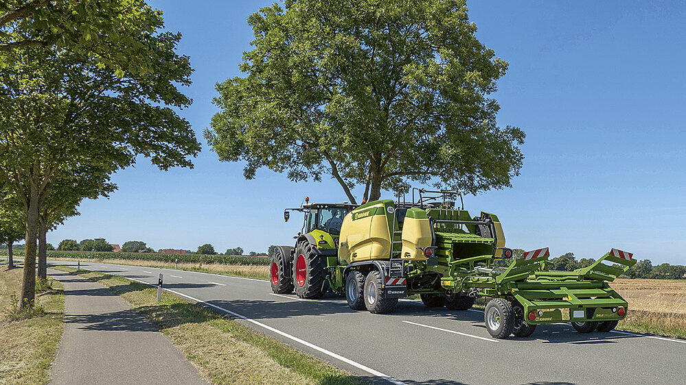 KRONE BaleCollect saves time and money. The up to 1.20 m (3'11") wide machine collects and deposits up to three bales. BaleCollect offers various patterns of depositing the bales in the field, which suit various handling strategies and reduce labour hours, field traffic and soil compaction. Its unique telescoping drawbar translates into easy use and safe transport on public roads. BaleCollect is the perfect match for the high-throughput and high-density KRONE BiG Pack.