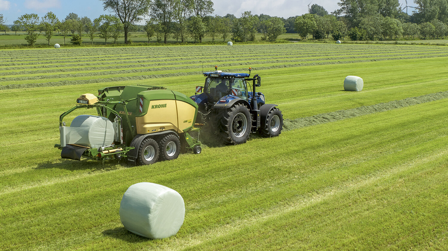 Uncompromising stability for the toughest continuous use and great flexibility – the KRONE ComPack V and CV Pro set new standards. The bale diameter can be infinitely adjusted from 1.00 m to 1.50 m and the baling pressure can be adjusted electrically from the cabin to suit different crops and operating conditions.