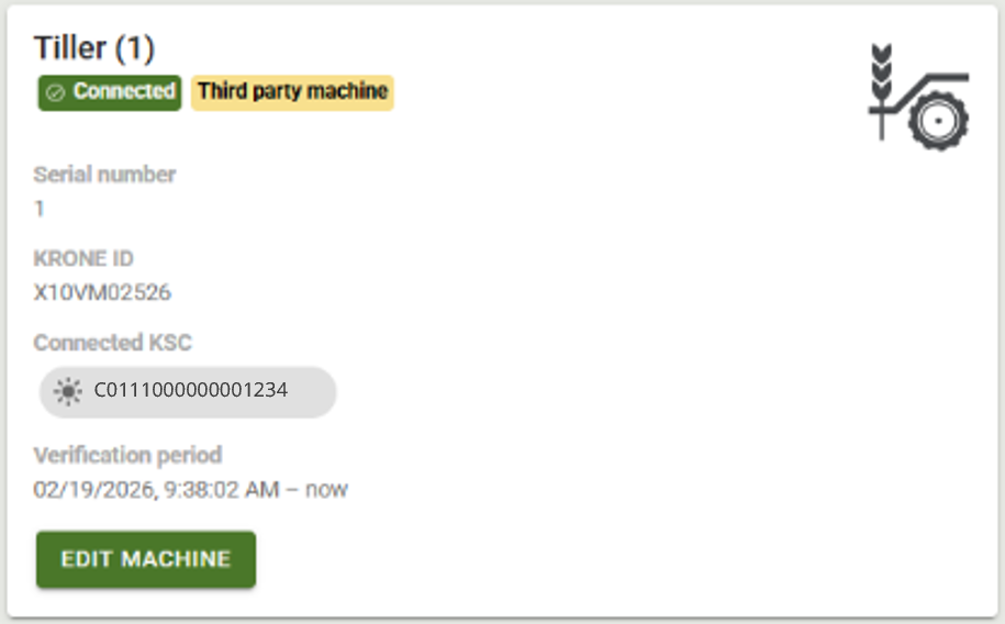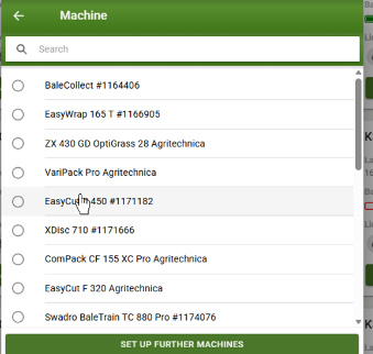 The machine can now be added under "My machines" in mykrone.green using the serial number. The working width is stored automatically.