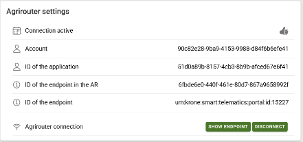 2) After a successful connection and setup of the end points in FMIS, all KSC Solar are connected to the agrirouter